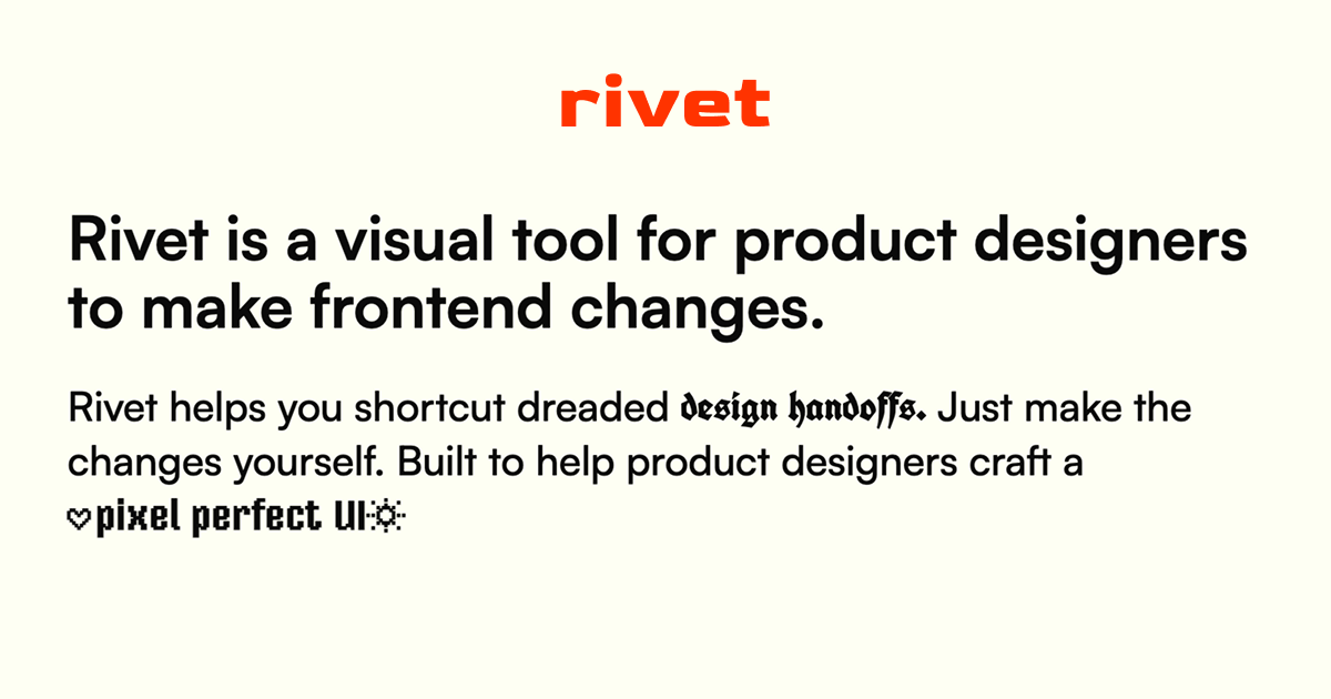 Rivet leverages design and technology to streamline product development processes. Rivet is a visual AI tool that enables product designers to directly change any UI in software. Rivet provides a platform focused on enhancing collaboration among product teams, integrating features like real-time feedback, version control, and automated workflow optimizations. Founded by Sam Gorman (Stanford University, ex-Snorkel AI). River is backed by Y Combinator (Partner: Aaron Epstein).