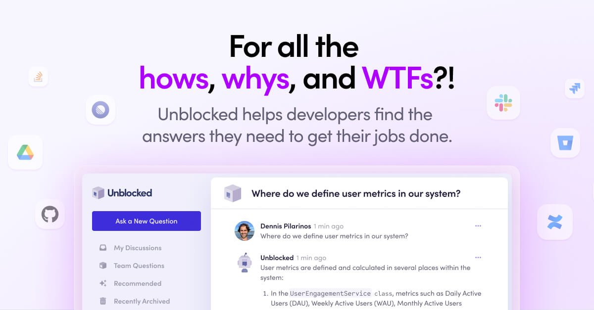 Unblocked is revolutionizing software development with AI-powered context-aware assistance. Founded in 2022 by Dennis Pilarinos, a seasoned entrepreneur with over 15 years of experience in developer tools, Unblocked has quickly gained traction among top tech companies. While specific funding details are undisclosed, the company's rapid growth and high-profile client base suggest substantial backing. Pilarinos' background includes founding Buddybuild (acquired by Apple in 2018) and leadership roles at Apple, Amazon Web Services, and Microsoft, bringing valuable industry expertise to Unblocked.