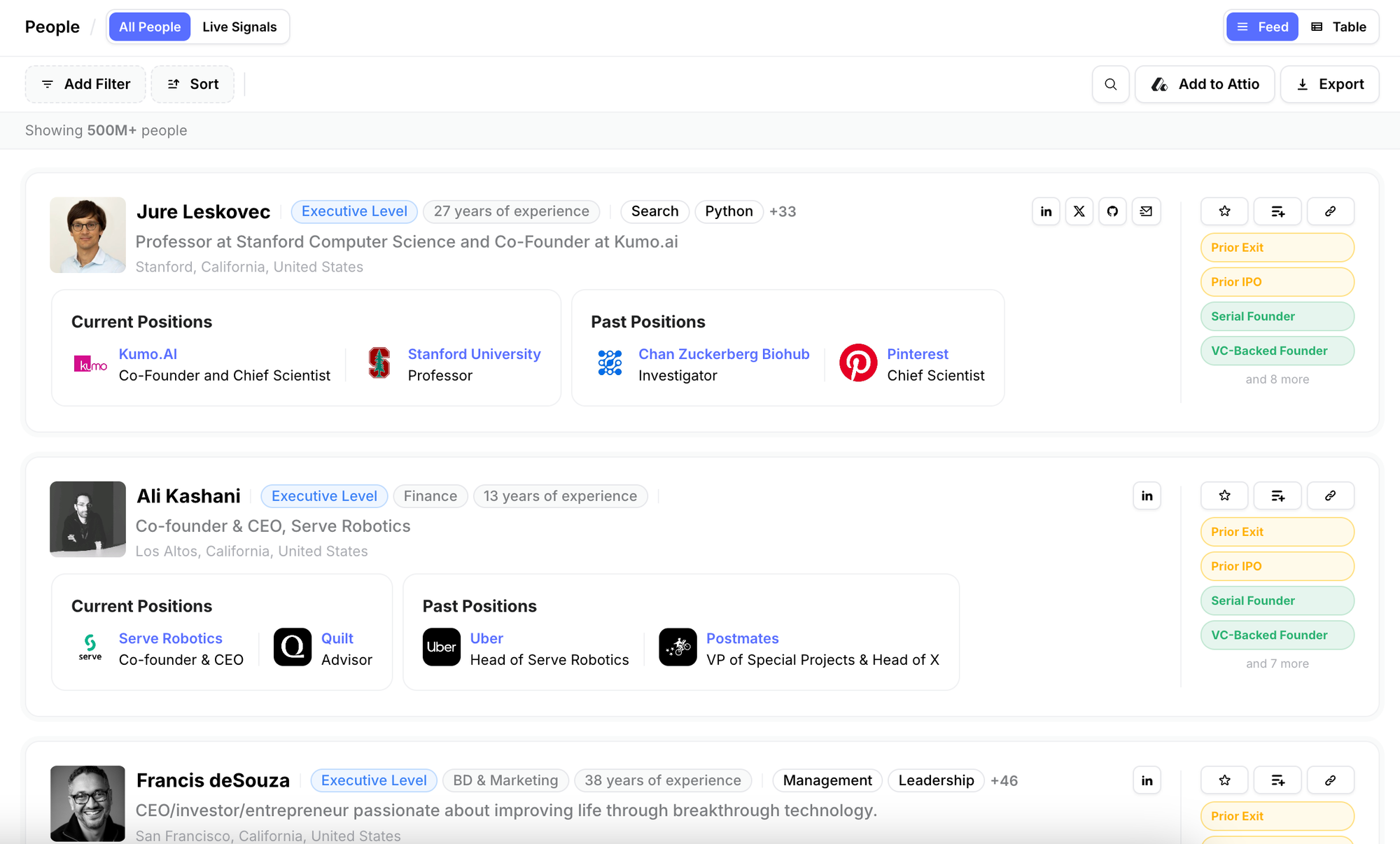 - Unique, High‑Impact Insights: Identify standout professionals with our exclusive data points like VC-backed experience, prior exits, and technical expertise. Spot top‑tier talent faster than ever. ⚡