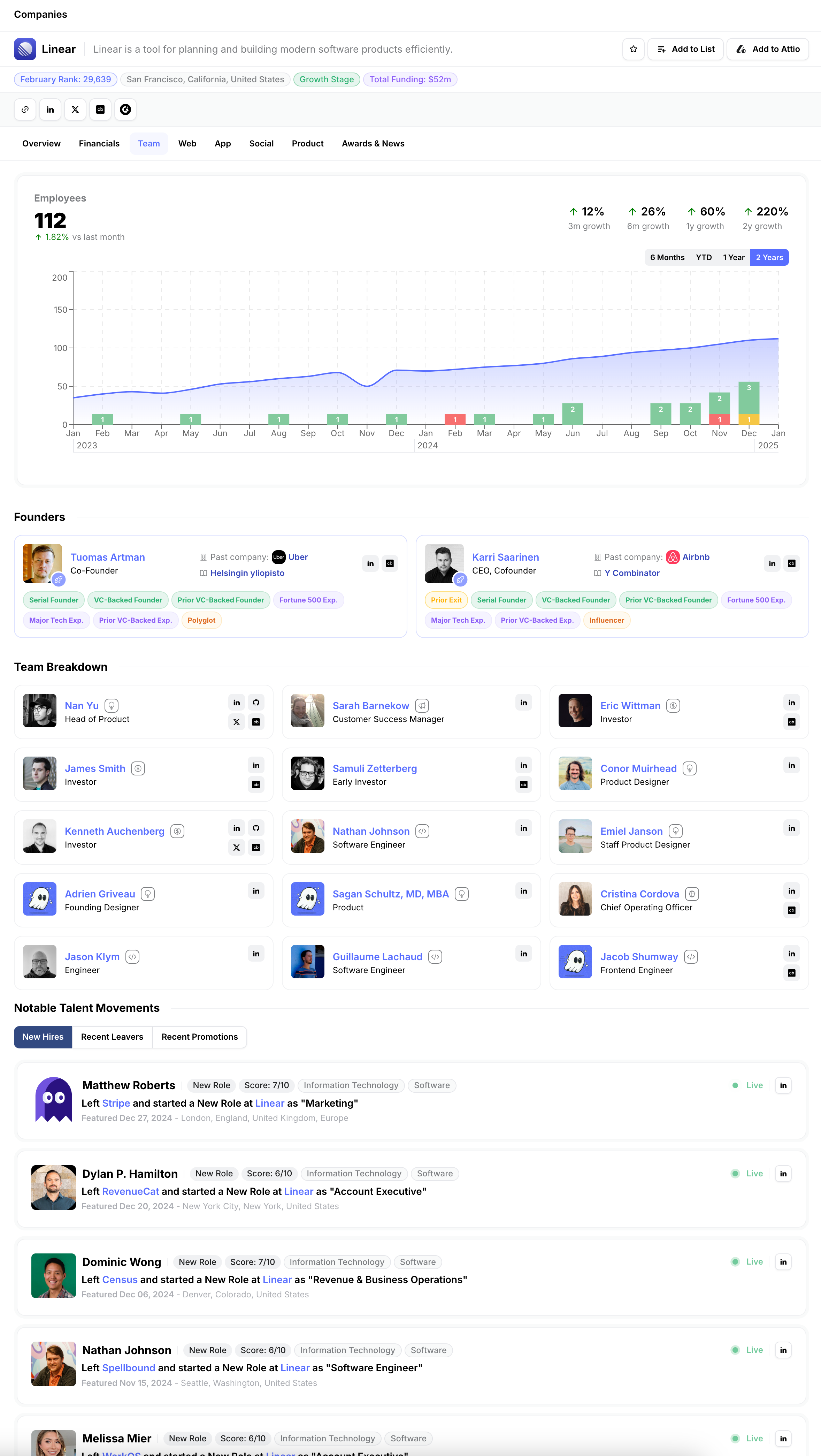 - Full Team Breakdown: See a company’s entire workforce structure at a glance, identify influential players, and uncover how teams evolve over time.